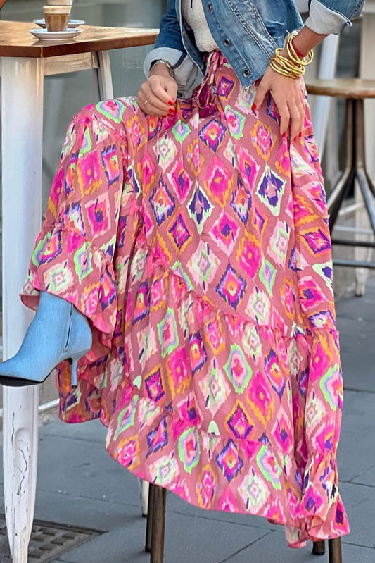 This boho-style skirt will complete your summer outfit The high waistline and flare design will...