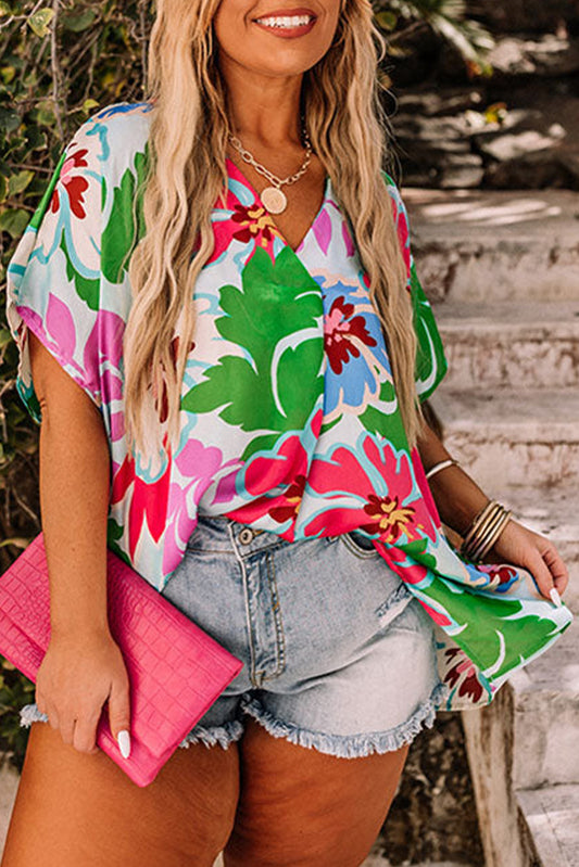 This plus-size blouse will add luster to your outfit The mixed floral pattern spreads a...