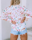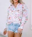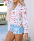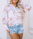 Multicolor Abstract Print Lantern Sleeve Casual Shirt