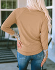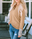 Brown Leopard Cuffs Ribbed Henley Top