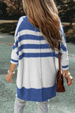Stripe V Neck Buttoned High Low Sweater Cardigan