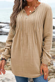 Casual Pleated V Neck Textured Loose Top