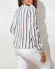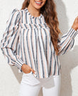 Striped Colorblock Puff Sleeve Frilled Neck Blouse