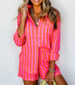 - Features a collared neckline, a chest pocket, and buttoned cuffs