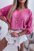 Rose Pleated Texture Roll Tab Sleeve Blouse