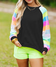 Sequin Color Block Raglan Sleeve Pullover Sweatshirt