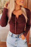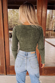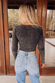 Mineral Wash Ribbed Snap Buttons Long Sleeve Bodysuit