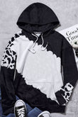 Cow Tie Dye Print Pocketed Drawstring Pullover Hoodie