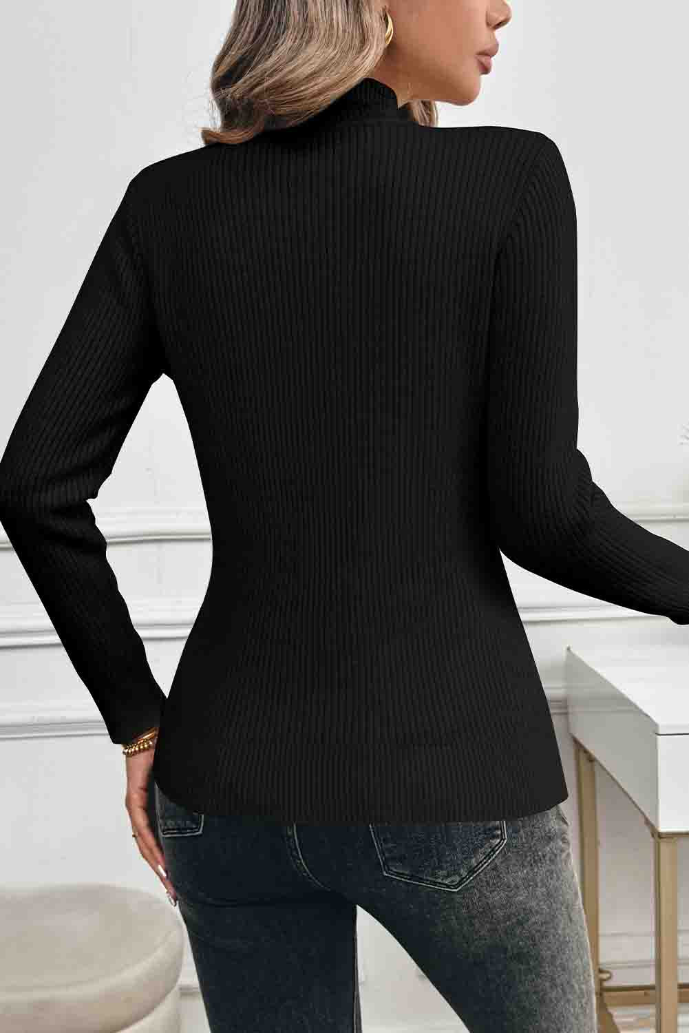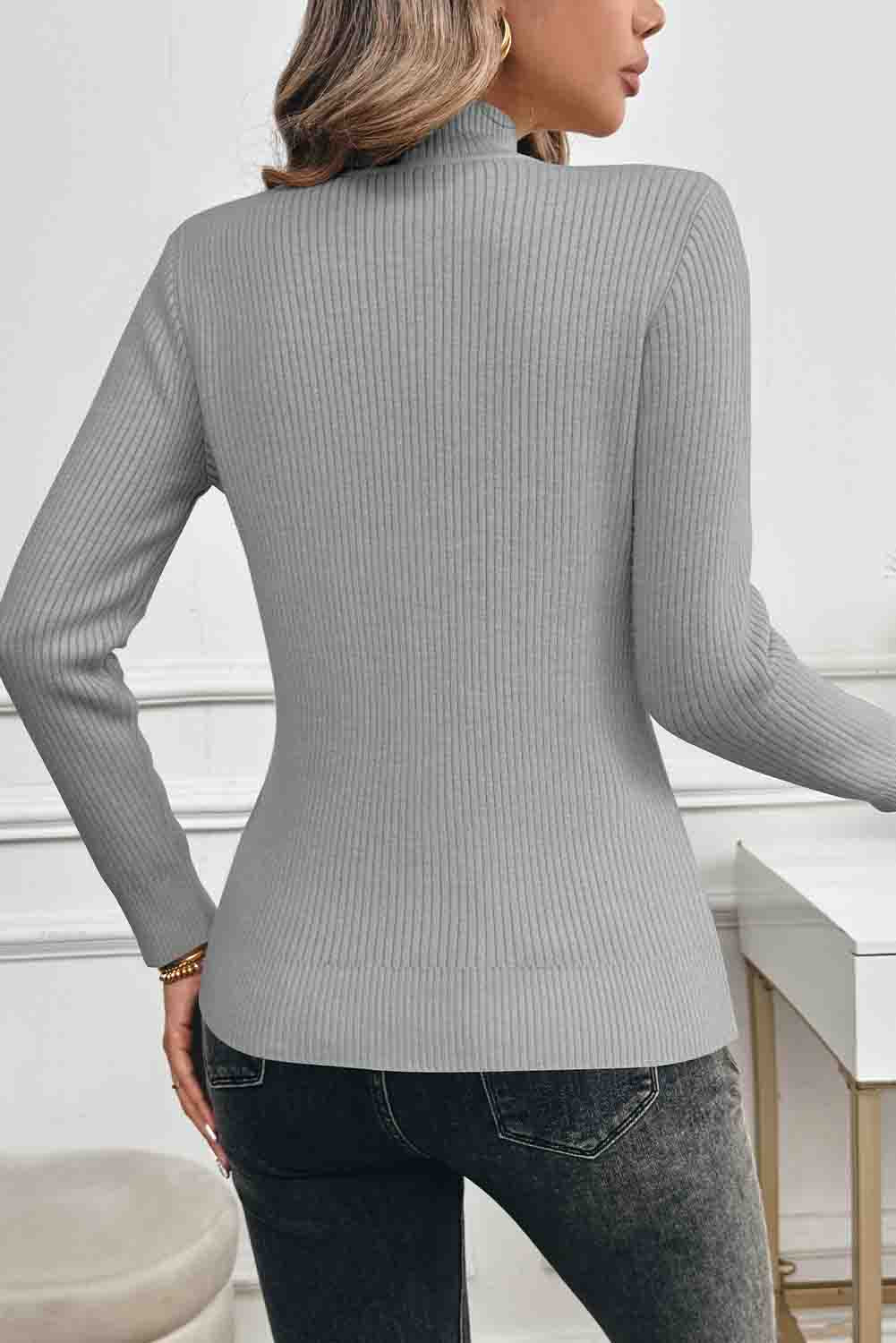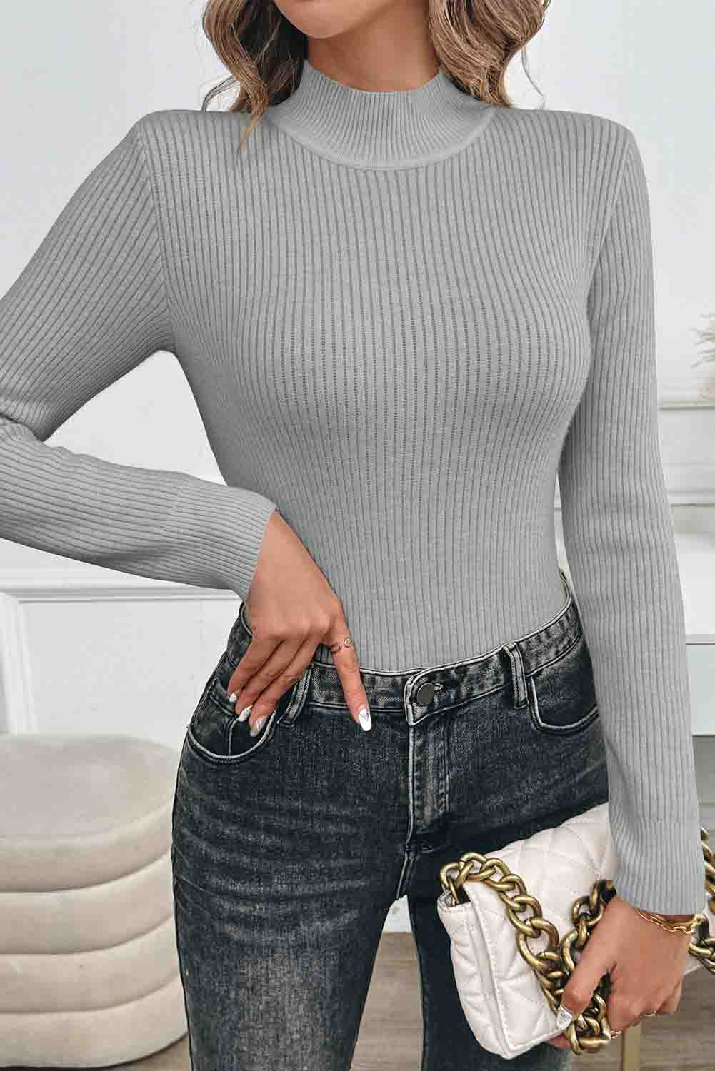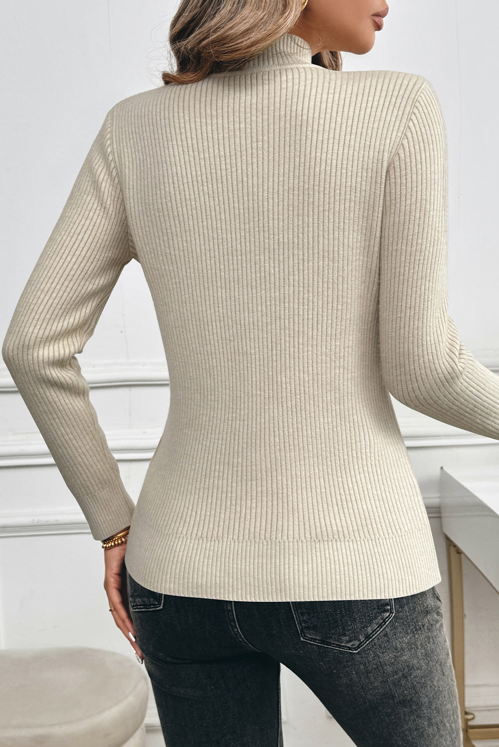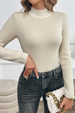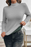 Solid Color Fleece Lined High Neck Slim Fit Sweater