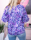 Plus Size Printed Round Neck Bubble Sleeve Blouse