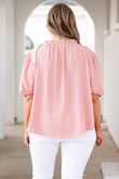 Pink Plus Size Swiss Dot Puff Sleeves Top