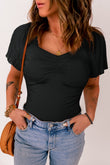 Ruched Frilled Puff Sleeve Square Neck Bodysuit