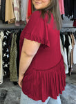 Plus Size V Neck Ruffle Sleeve Peplum Blouse