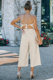 Beige Ruffled Strapless Wide Leg Jumpsuit