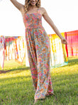 Boho Floral Smocked Sleeveless Wide-Leg Pocket Jumpsuit