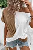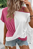 Colorblock Strappy Cold Shoulder Twist Hem Top