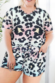 Tie Dye Print Short Sleeve Lace-up Waist Plus Size Lounge Set