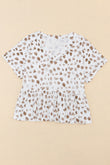 Leopard V Neck Short Sleeve Peplum Top