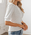 - This short sleeve top featuring classic stripes print is fashionable and timeless