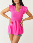 Smocked Ruffle Flutter Sleeve Peplum Blouse