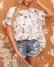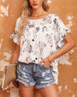Floral Ruffled Short Sleeve Back Knot Blouse