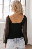 - The sheer bubble sleeves add a playful and flirty element to the top