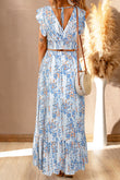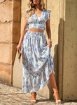 White Floral Ruffled Crop Top and Maxi Skirt Set