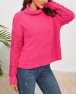 Ribbed Turtleneck Fuzzy Sleeve Knit Sweater