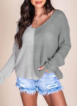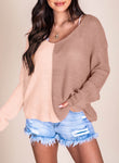 - This chic sweater has an eye-catching colorblock design in trendy hues