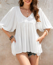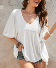 Lace V-Neck Bracelet Sleeve Ruffle Blouse