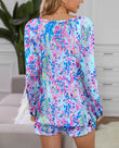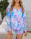 Floral Long Sleeve Top and Drawstring Shorts Set