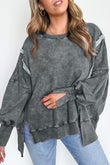 Acid Wash Relaxed Fit Seamed Pullover Sweatshirt with Slits