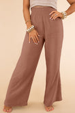 Textured High Waist Wide Leg Plus Size Pants
