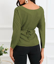 Lace-up Wrapped Split Hem Solid Long Sleeve Top
