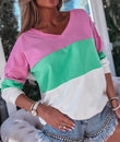 - This Ribbed V Neck Color Block Patchwork Sweatshirt is casual and chic for modern ladies