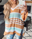 Colorblock Stripe Long Sleeve Split Sweater