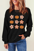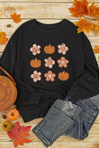 Floral Halloween Pumpkin Graphic Crew Neck Sweatshirt