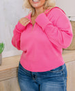 Solid Ribbed Trim Plus Size Zip Collar Sweater