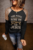 This Mama Runs On Coffee And Jesus Sequin Patched Top