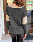 Brushed Contrast Knit V Neck Colorblock Long Sleeve Top