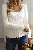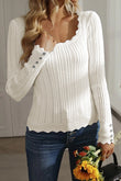 Scalloped Trim Ribbed Eyelet Slim Fit Sweater