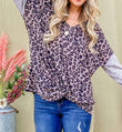Leopard Print Drop Shoulder Patchwork Sleeve Top