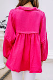 Crinkle Collared V-Neck Bubble Sleeve Flowy Blouse