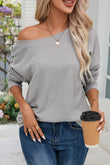 - This waffle knit blouse is fashionable with textured fabric made