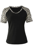 Black Leopard Color Block Cut Out Short Sleeve Top