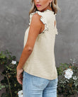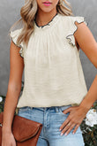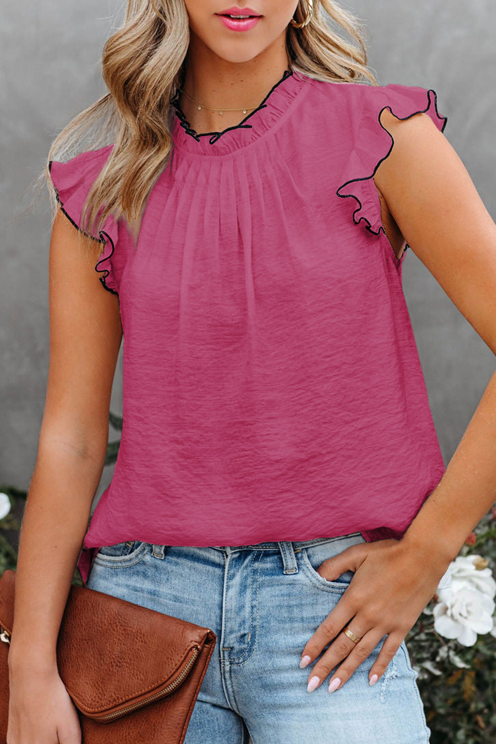 Contrast Trim Ruffled Crew Neck Sleeveless Top
