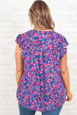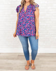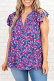 Purple Plus Size Floral Print Ruffle Sleeve Blouse